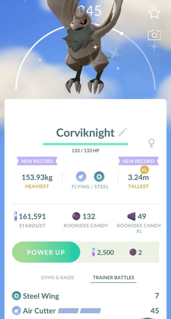 New events and content are continuing to be announced for Pokémon GO on a regular basis. Read on below to learn more: The Pokémon GO Community Day event on August 30 features Rookidee, an adorable bird Pokémon, and offers players the exciting chance to catch its Shiny variant, Shiny Rookidee. Additionally, trainers will have the … Continue reading Pokémon GO screenshot of Shiny Corviknight that knows the Pokémon GO Community Day exclusive move Air Cutter